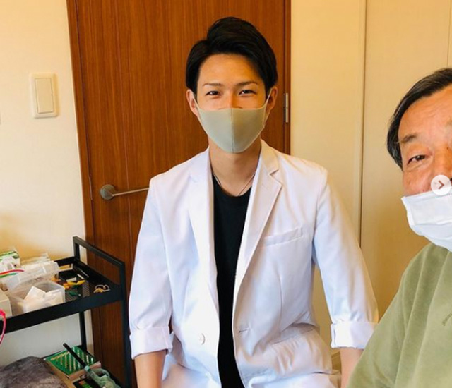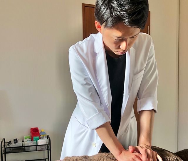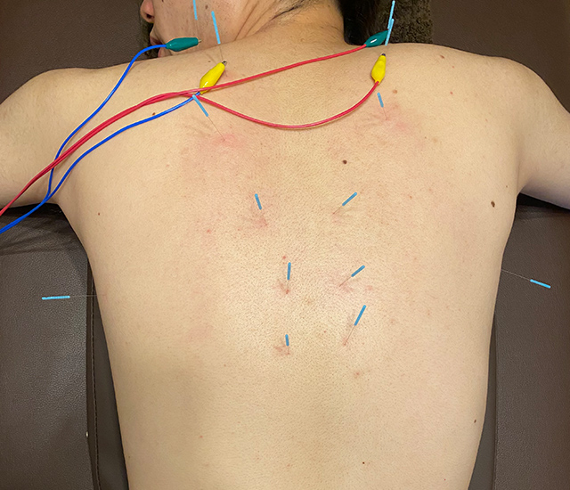 背中の鍼灸治療の様子(30代男性・会社経営)
