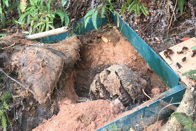 土中の中に巣がある為、調査を行い駆除を行いました。