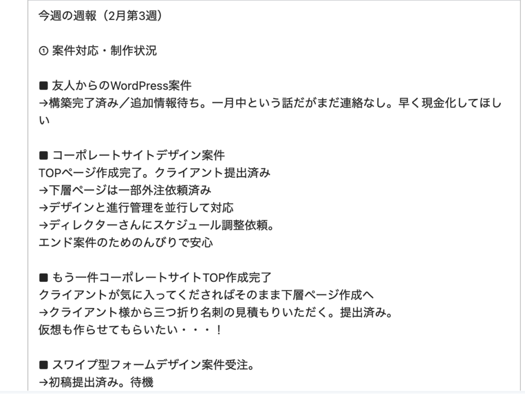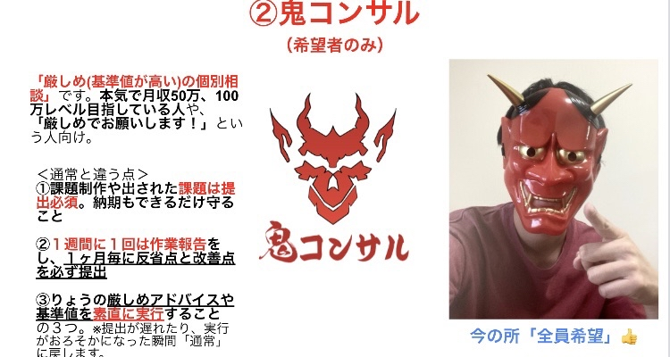 ちなみに、週報に関しては強制ではなくて「鬼コンサル」というのを希望してる人のみ。