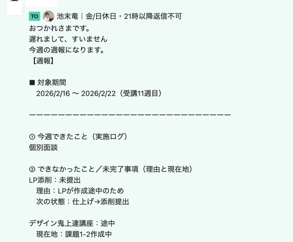※コベサポはスクール内で出される課題は必須ではなく、実践重視なので“案件”や“本業”が最優先だったりします。この部分もだいぶ変わってるかと。