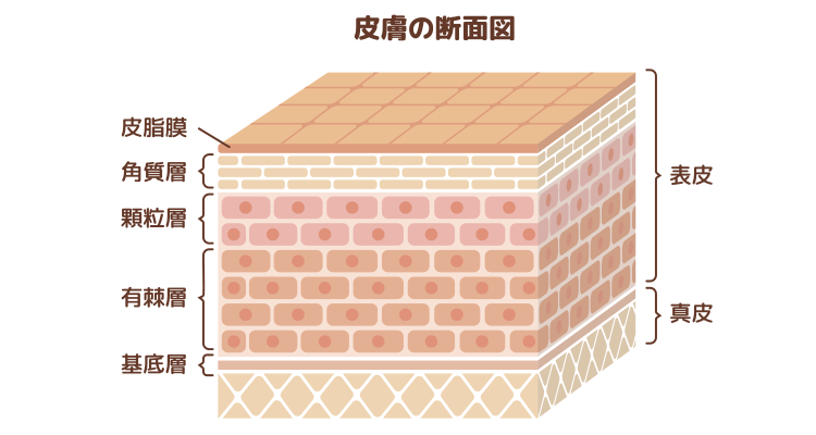 お肌の構造は「表皮」、「真皮」、「皮下組織」の3層に大きく分けられます。