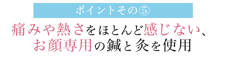 顔専用の鍼とお灸で、あなたの悩みに合った場所を中心に施術していきます。培養液鍼灸との併用で肌の再生を促します。