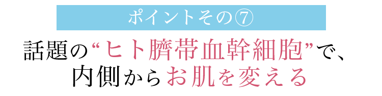 赤ちゃんを成長させる「ヒト臍帯血由来」幹細胞培養液で、お肌をハリ・ツヤ・潤いを促します。