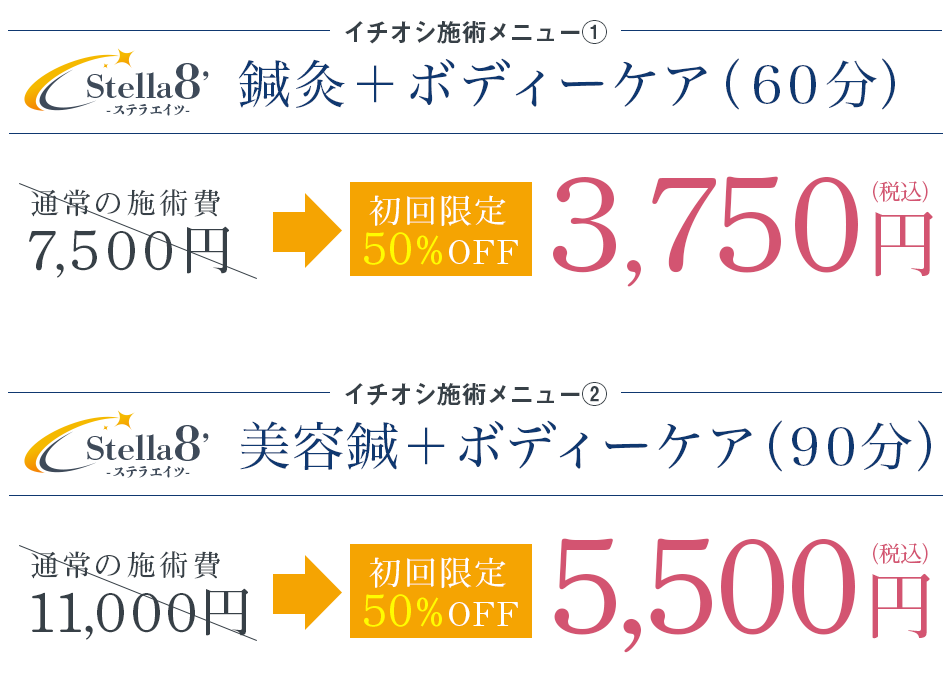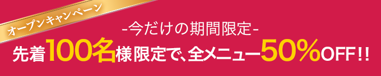今なら全メニュー50%割引で施術を受けることができます!