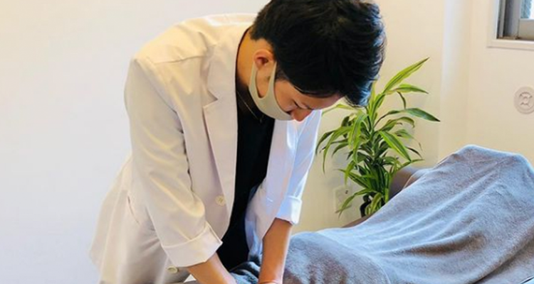 背中の鍼灸治療の様子(30代男性・会社経営)