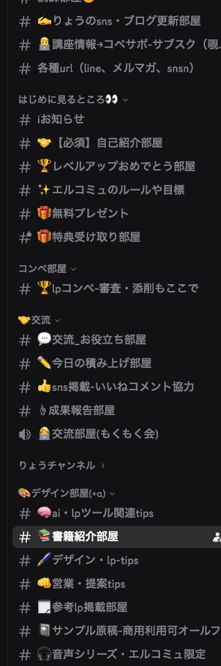 【今日の積み上げ部屋】や【成果報告部屋】など参加者が書き込みで見るような部屋もありますよ。