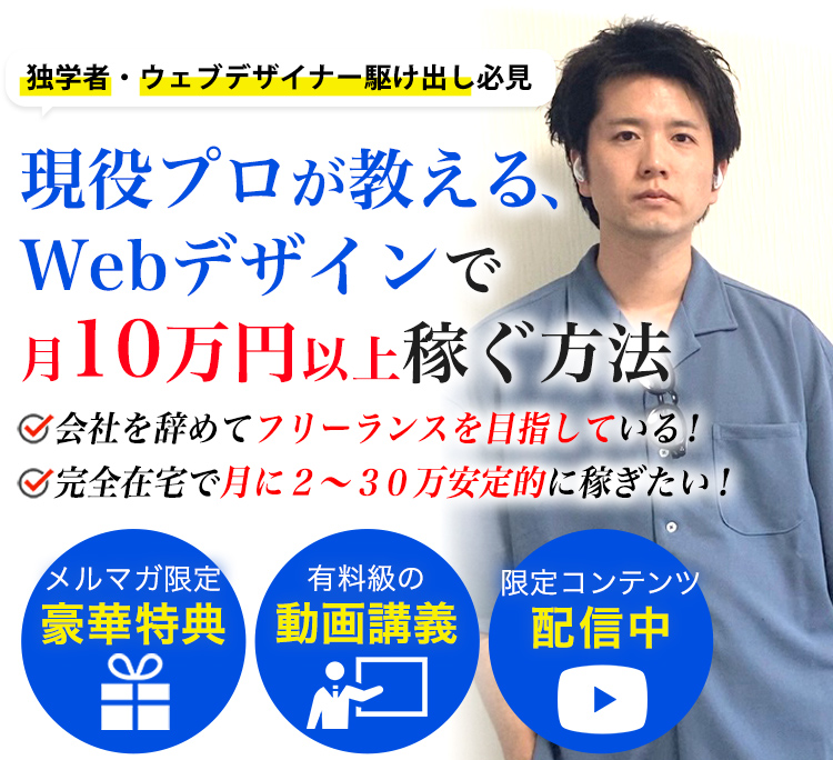 私の公式メルマガへ登録してもらえたら無料でデザイン理論の動画講義が受けられます。